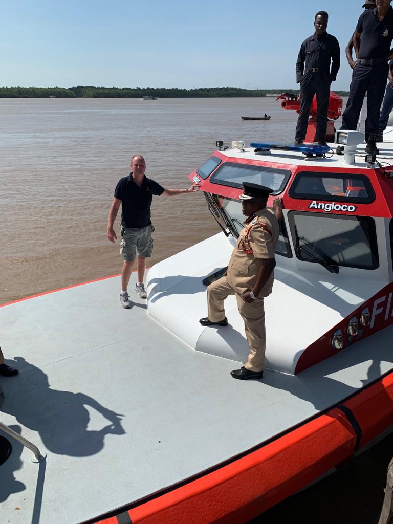 After safely being delivered to customer Angloco Limited, who has recently celebrated a 50th anniversary milestone for designing, manufacturing and supplying special purpose fire-fighting and rescue vehicles and equipment in over 50 countries world-wide, the vessel has now been delivered, serviced and is in working operation on the Demerara River, in Guyana, South America.